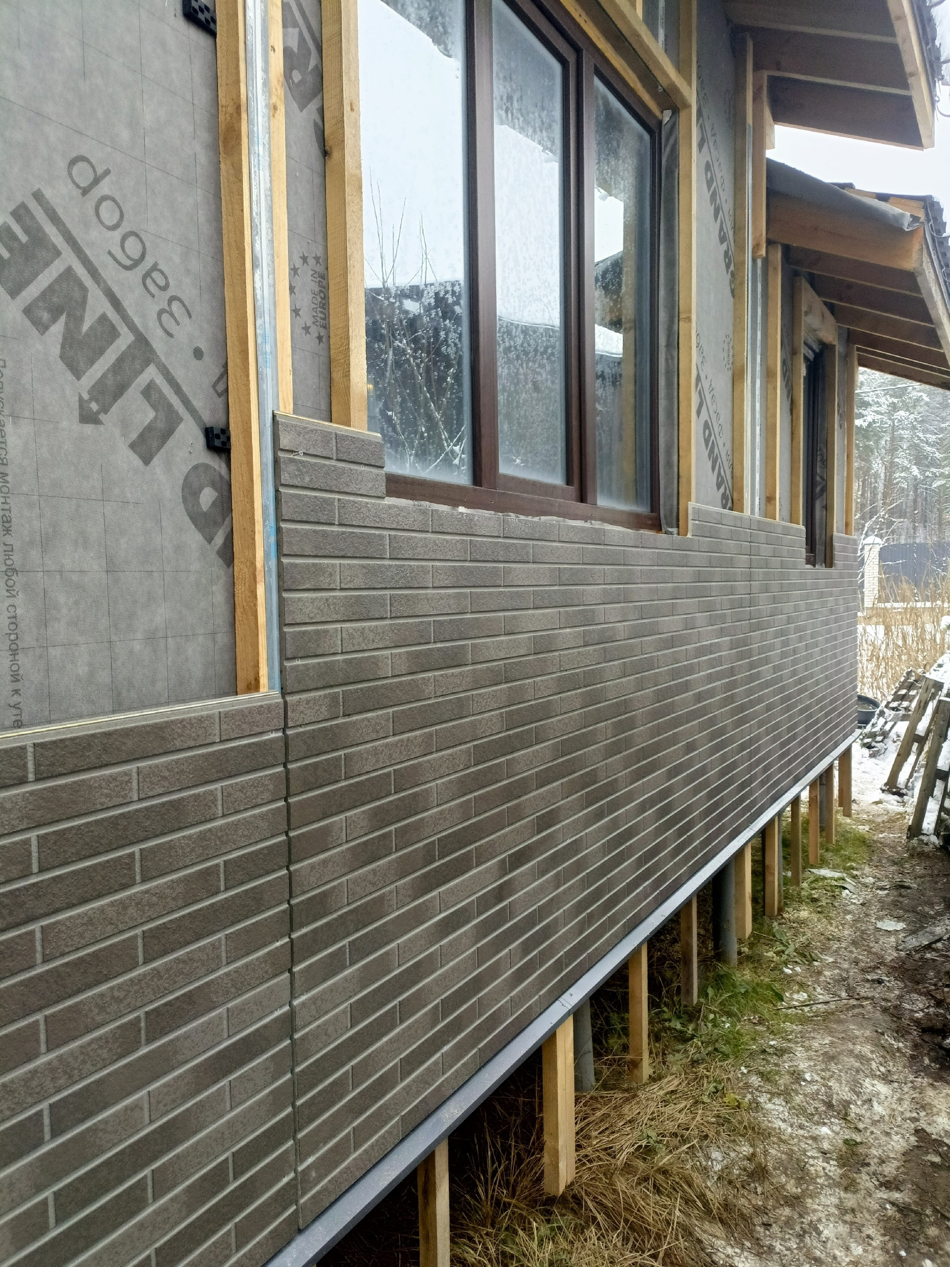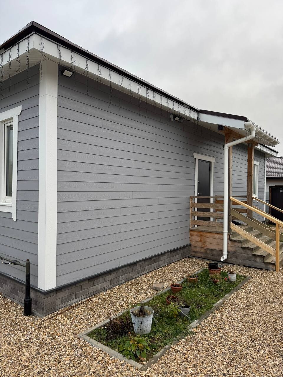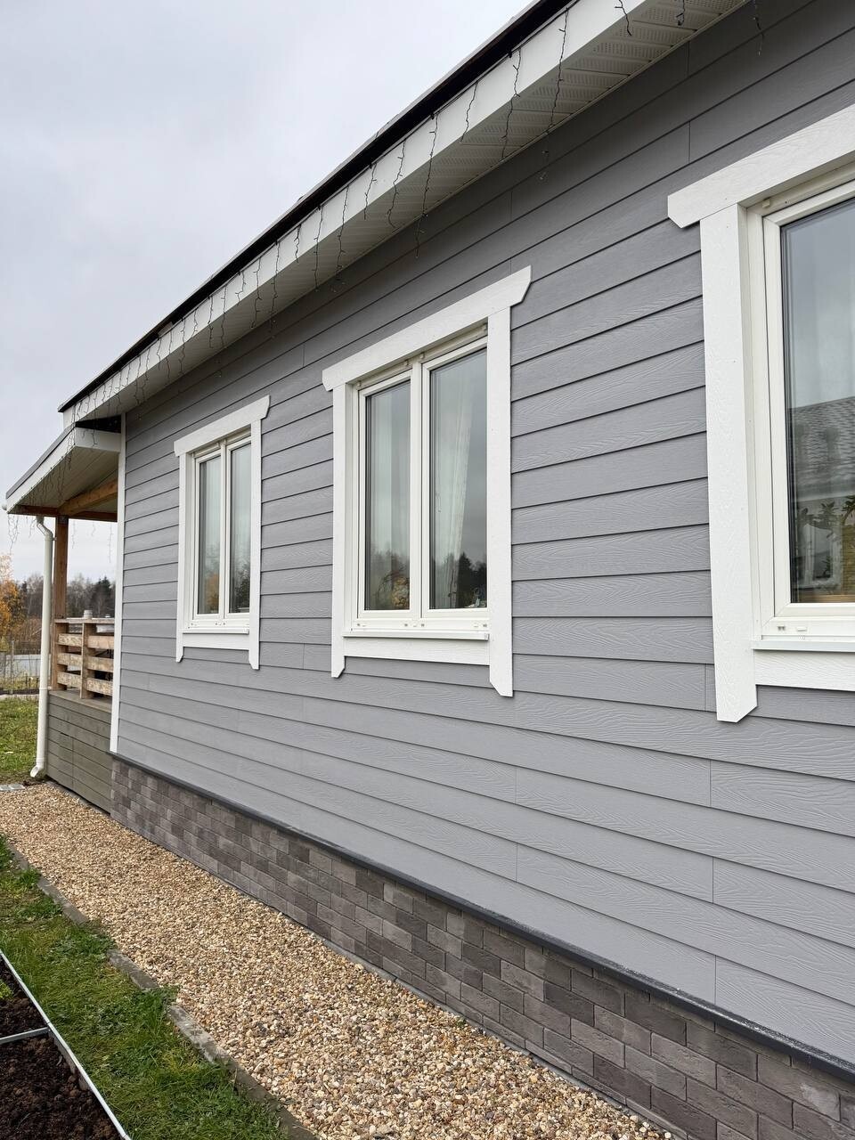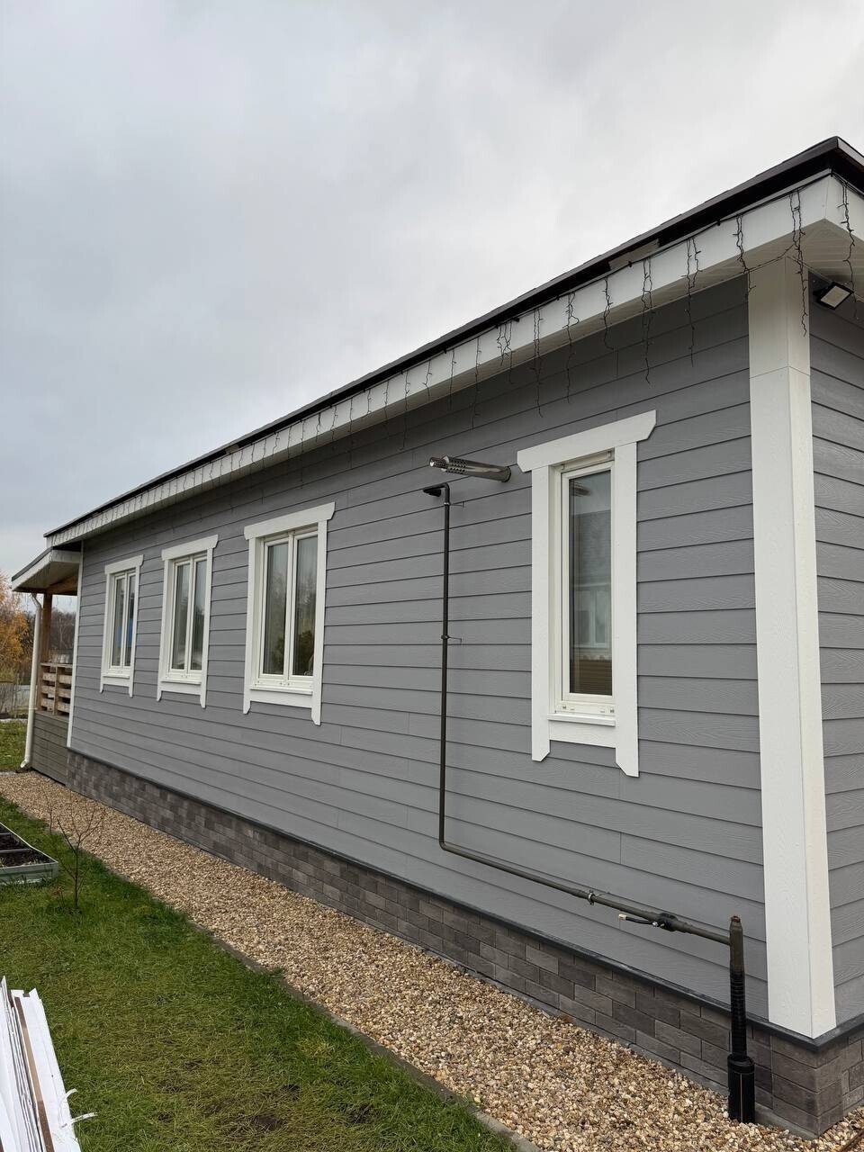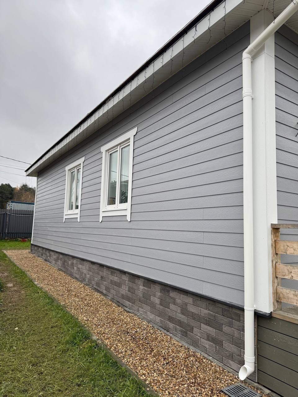 Серый фиброцемент и цоколь под серый камень - выглядит хорошо