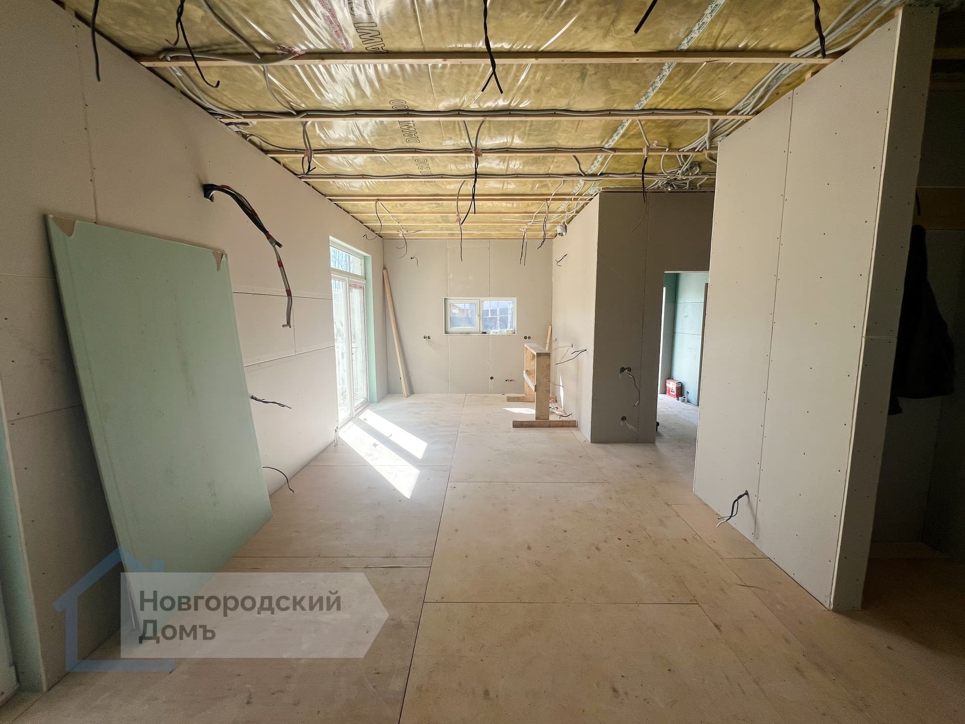 Зашивка гипроком внутренних стен карнкасного дома - один из вариантов черновой отделки. А что потом по гипроку? Что угодно. Обои, краска, шпатлевка и т.д. и т.п.