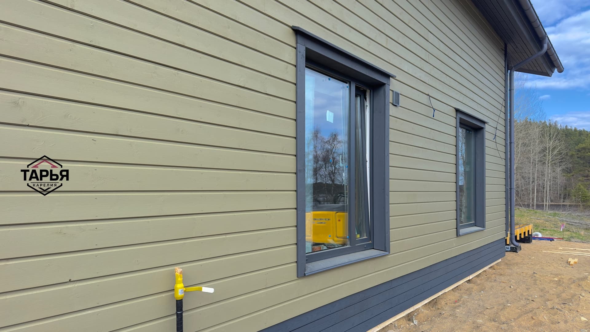 Чтобы водичка не затекала внутрь дома - над окнами делают отливы. Именно НАД окнами. Здесь отлив выполнен (похоже) из доски. Интересное решение.