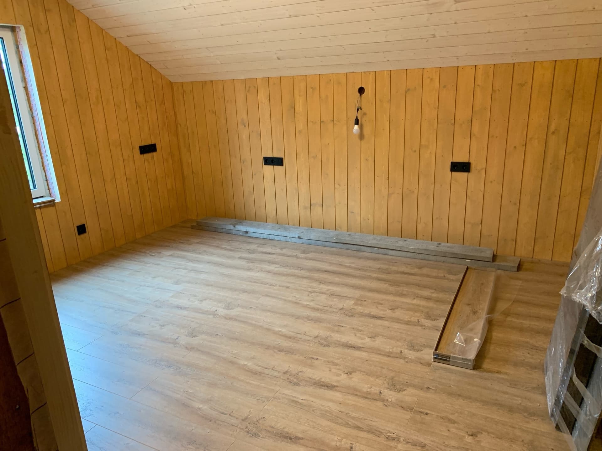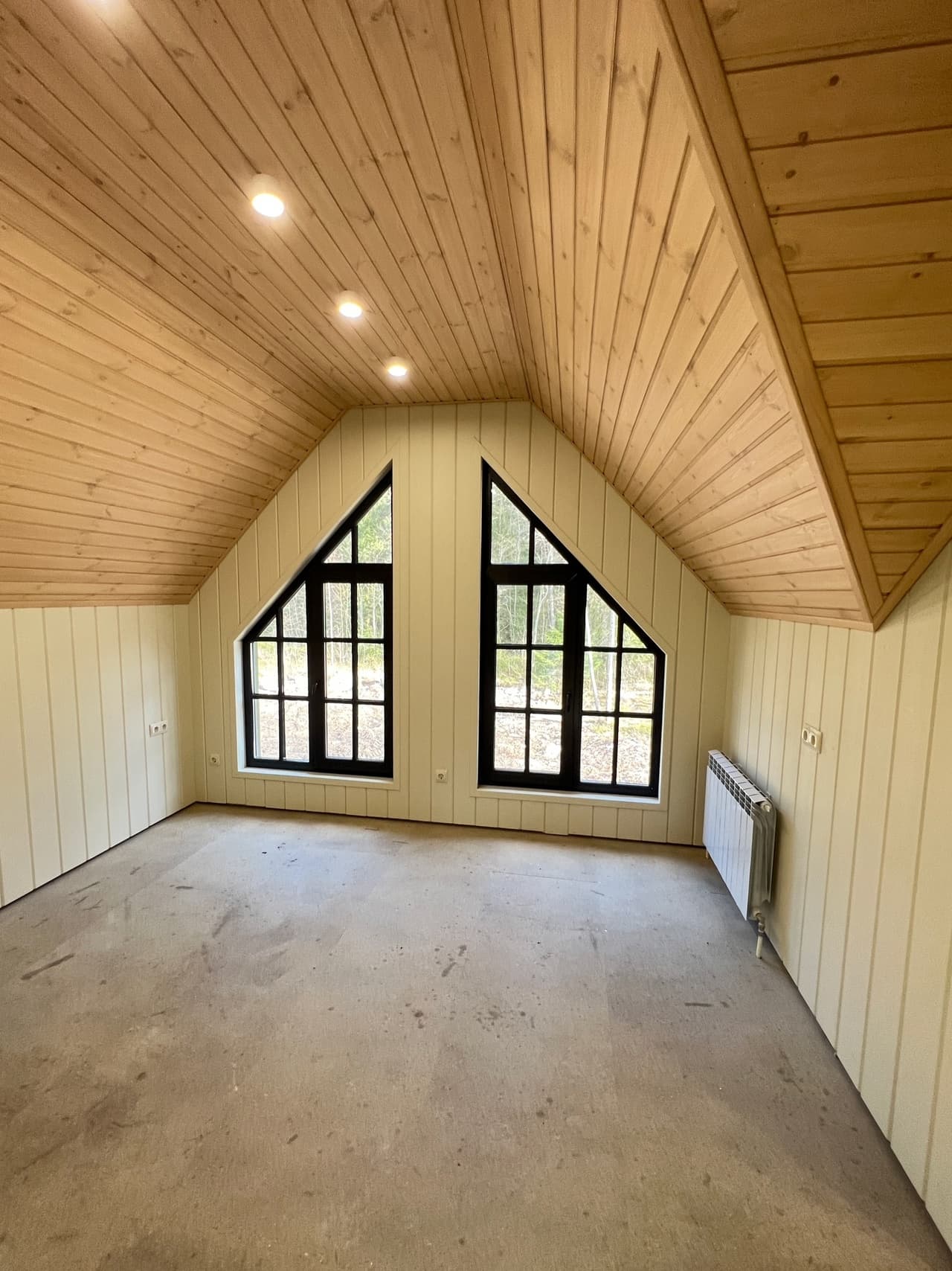 Еще вариант такого сочетания на мансардном этаже каркасного дома: