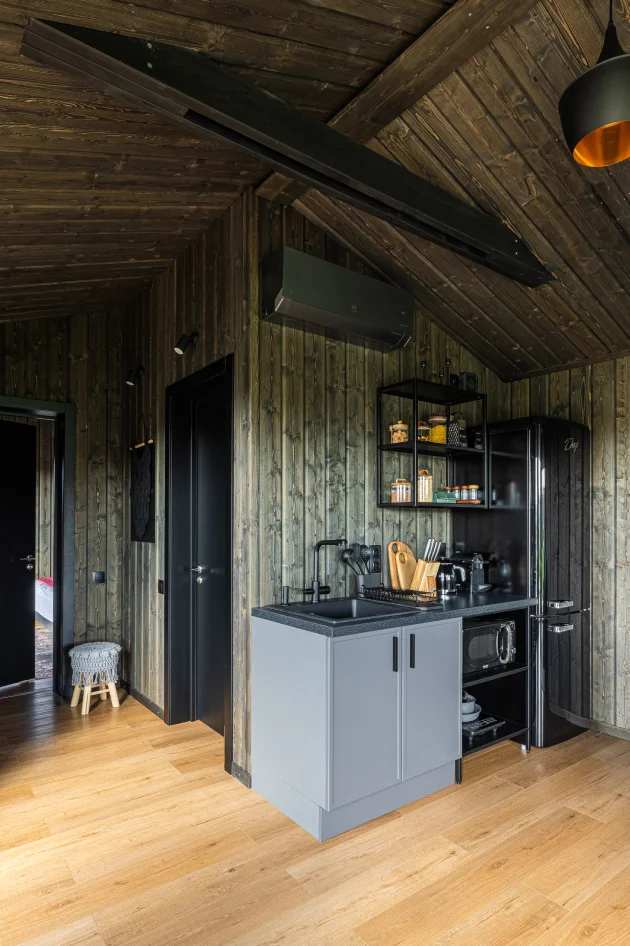 Стоит обратить внимание, что как и на предыдущей фотографии - нет ни плинтусов, ни прочих “раскладок” на стыках. Очень классно!